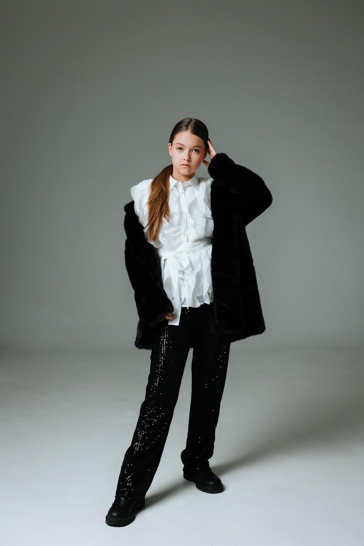 Трендові штани декоровані пришитими паєтками - маст хев на зимові свята. Напівпрозора тканина, мають підклад. Пояс на резинці.