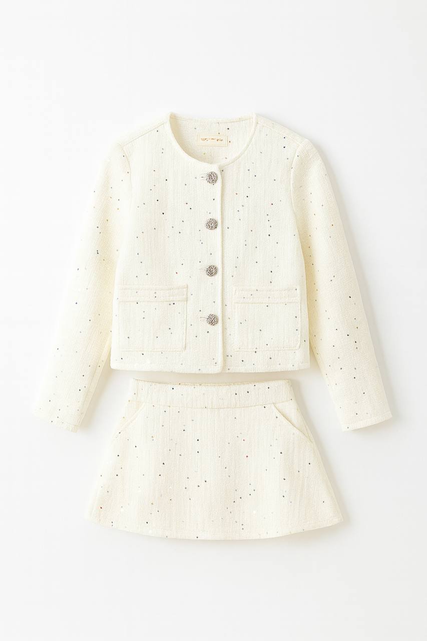 Святковий костюм з твіду молочного кольору.