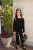 Стильний костюм, виготовлений із м’якої віскози, оздоблений блискучими стразами, які додають образу вишуканості. Светр класичного крою поєднується з брюками з легким кльошем, що візуально подовжує силует. Брюки мають комфортний пояс на резинці, завдяки чому костюм не тільки трендовий, але й дуже зручний у носінні.