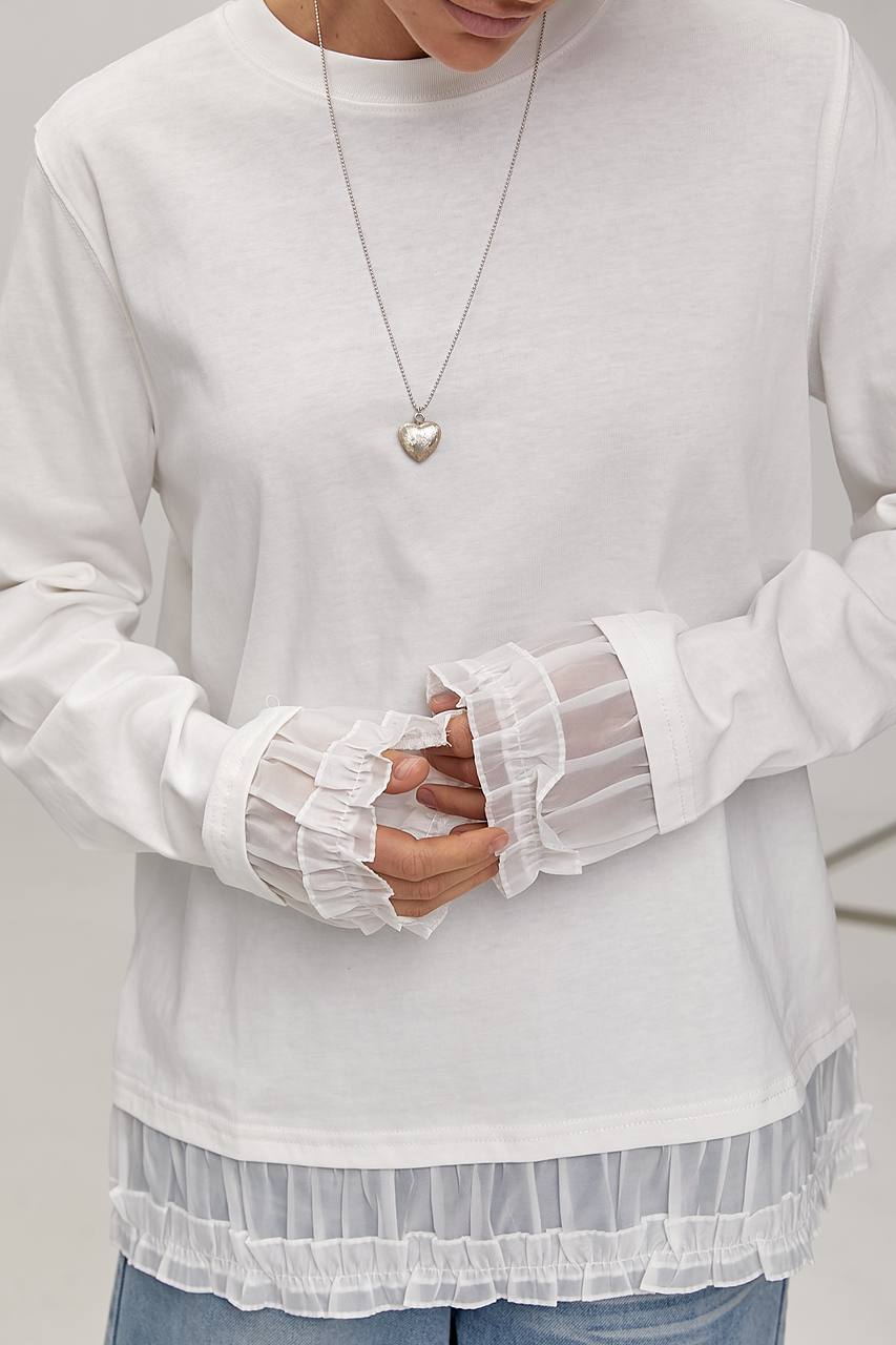 Лонгслів вільного крою з 100% бавовни , оздоблений плющами з тенселю.